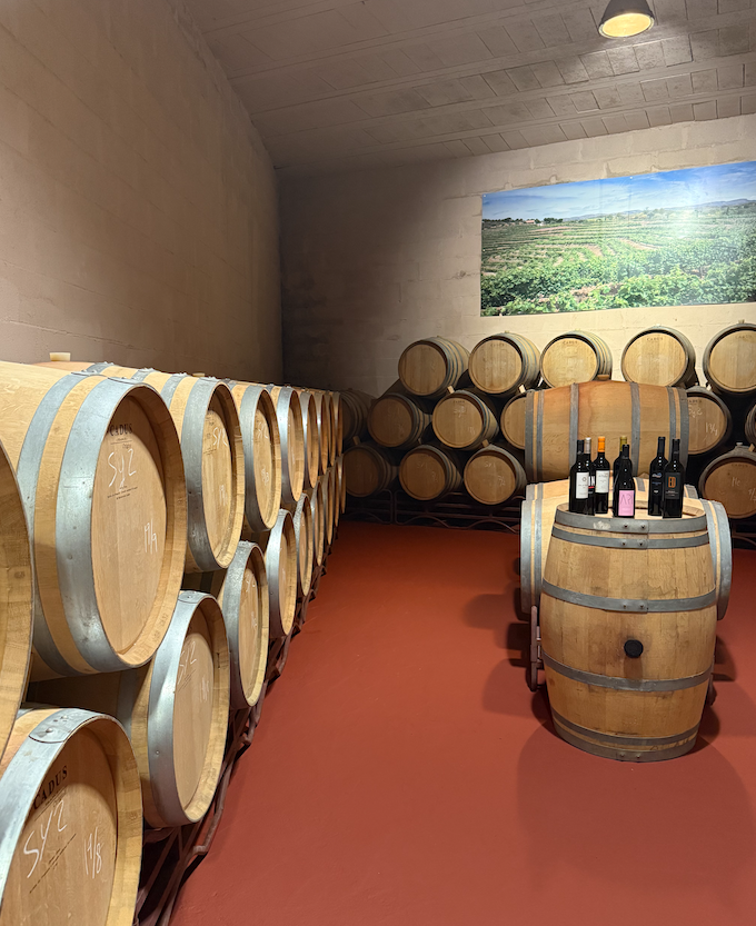 Prépare-toi à plonger dans une cave spectaculaire, accessible par une longue allée bordée de cyprès centenaires, qui s’achève sur une sculpture dédiée au métier de la vigne.